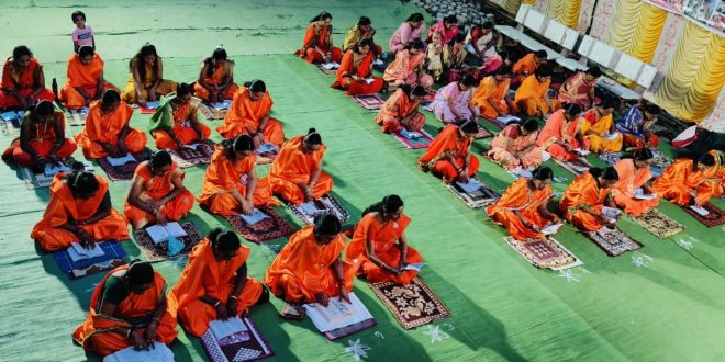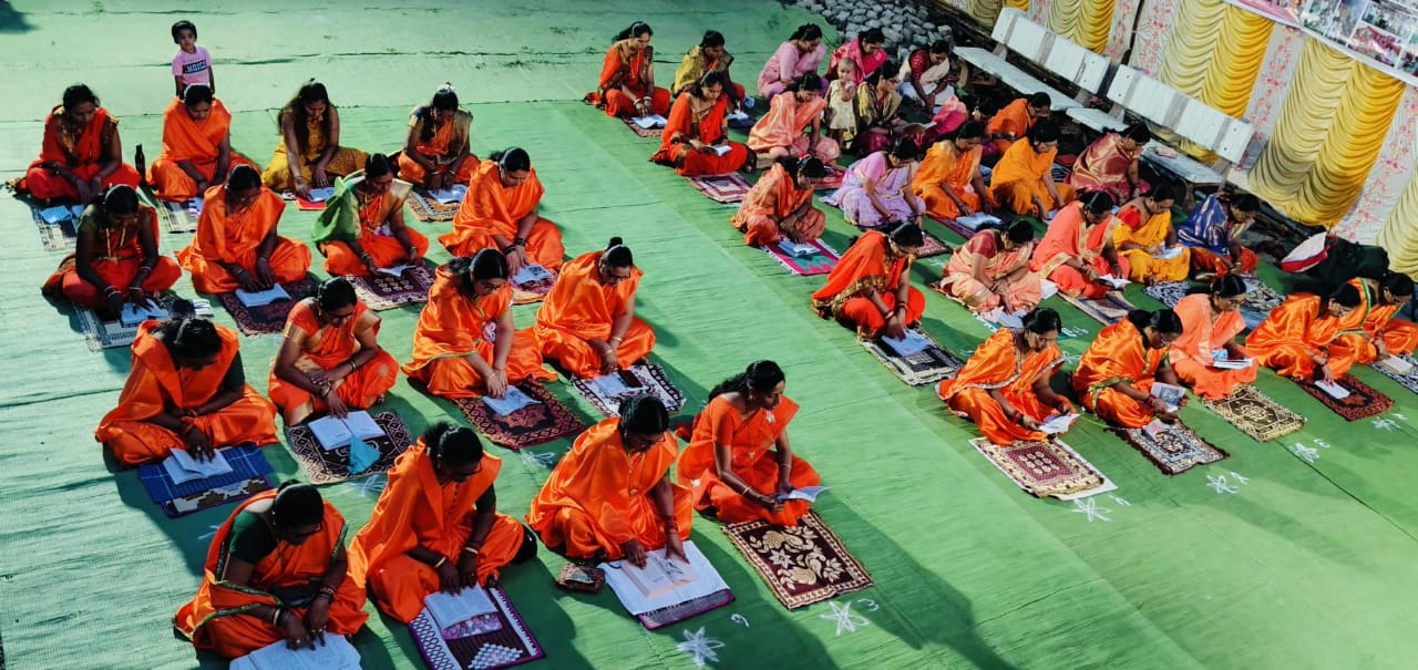 चिमूर :- चिमूर शहरातील माणिकनगर येथील गुरुदेव शारदा महिला मंडळाने ग्रामगितेतील ४१ व्या अध्यायाच्या सामुहिक वाचनाचा नावीन्यपूर्ण उपक्रम राबविला.मागील १९ वर्षांपासून हे मंडळ विविध उपक्रम राबवित असते.वंदनीय राष्ट्रसंत तुकडोजी महाराजांच्या विचारांना अभिप्रेत मानून मंडळाच्या पदाधिकाऱ्यांनी यावर्षी ग्रामगितेतील ४१ व्या अध्यायाच्या ४१ महिलांद्वारे सामुहिक वाचनाच्या उपक्रमाचे आयोजन केले.ग्रामगीता घरोघरी वाचली जावी आणि तुकडोजी महाराजांचे विचार सर्वदूर पोहचावे या उद्देशातून ग्रामगीता सामुहिक वाचनाचा कार्यक्रम राबविण्यात आला.