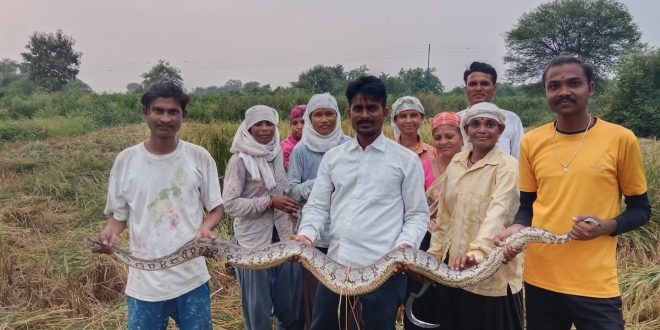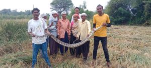 अशावेळी सर्पमित्र लोकांच्या व शेतकऱ्यांच्या मदतीला धावून येत असतात. सर्पमित्र शुभम रासेकर, सोहेल शेख, अभिषेक चंदनखेडे ,वन्यप्रेमी समीर बल्की, मंगेश बल्की पोलीस पाटील,शेतमजुर उपस्थित होते. फॉरेस्ट विभाग शंकरपूर, येथे नोंद करून जंगलात सोडण्यात येणार आहे. असे सांगितले व अजगर सापाला जीवनदान देण्यात आले. त्यामुळे नागरिकांकडून