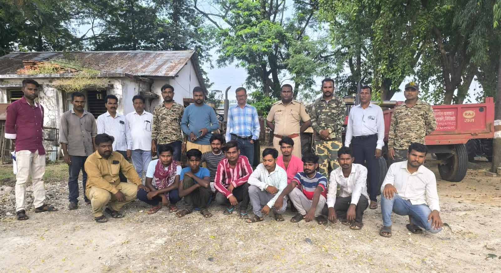 दोन ट्रॅक्टर सोबत आरोपी ड्रायव्हर निखील मंगरु सहारे, रा. शंकरपुर वय 24 वर्षे, दुसरा आरोपी ड्रायव्हर लखन श्रीराम रा. शंकरपुर वय 24 वर्ष, लखन शालीक चौधरी, रा. शंकरपुर वय 26 वर्ष, अशोक लक्ष्मण घरत, करपुर वय 27 वर्ष, जिवन सुधाकर दडमल, रा. शंकरपुर वय 24 वर्ष,लक्ष्मण जानवा रंदई, रा. शंकरपूर 26 वर्ष, जगदीश रवी सहारे, रा. शंकरपुर वय 24 वर्ष, सुमीत वाल्मीक मेश्राम, रा. शंकरपुर वय 20 वर्ष, संदीप जॉथरु सावसाकडे, रा. शंकरपुर वय 24 वर्ष सर्व राहणार शंकरपुर यांचेवर भारतीय वन अधिनि 27 चे कलम 26(1) (G), 41 व 42(2) नुसार वनगुन्हा क्रमांक 09147/228661/2024 दिनांक 28/10/20 न्वये गुन्हा नोंद करुन दोन्ही ट्रॅक्टर एकुण 180 घनफुट रेतीसह बारा प्लॉस्टिकचे टोपले, नऊ लोखंडी फावा क लोखंडी सब्बल जप्त करुन दोन्ही ट्रॅक्टर वनपरिक्षेत्र कार्यालय चिमुर येथे जमा केले‌.