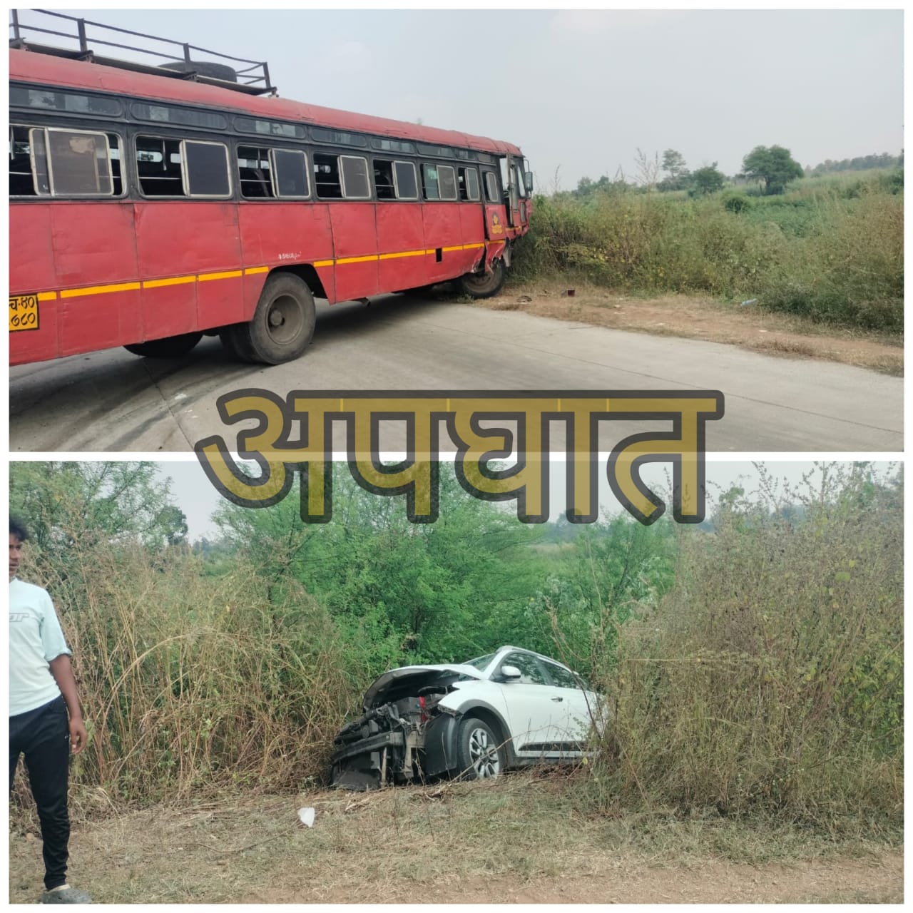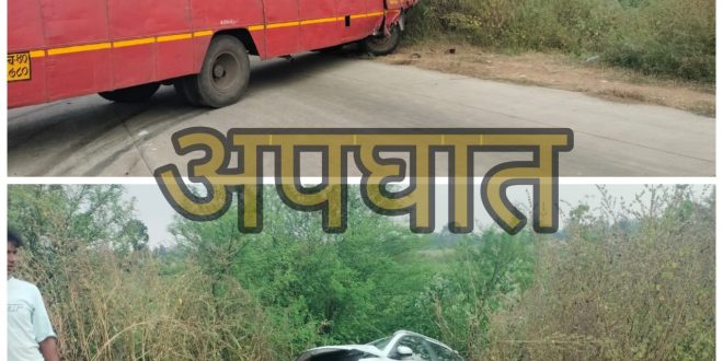 राष्ट्रीय महामार्गावर एसटी बस व फोरव्हीलर गाडीचा अपघात