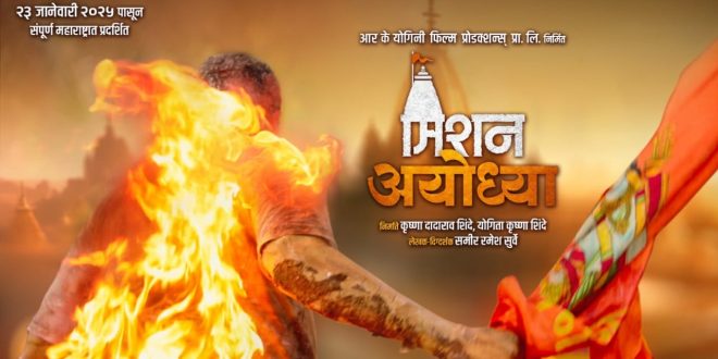 मुंबई :- अयोध्येच्या पवित्र भूमीशी जोडलेला आणि मराठी प्रेक्षकांच्या हृदयाला भिडणारा ‘मिशन अयोध्या’ चित्रपटाचा प्रवास, त्याच्या अत्यंत आकर्षक पोस्टरच्या प्रकाशनाने एका नवीन उंचीवर पोहोचला आहे. सामाजिक माध्यमांवर चर्चेचा विषय ठरलेले हे ‘पोस्टर’ आज ‘पुष्पा २’ या ब्लॉकबस्टर चित्रपटासोबत ‘स्टॅटिक झलक’ रूपात प्रदर्शित करण्यात आले. मराठी चित्रपटसृष्टीत प्रथमच अशा तोलामोलाच्या पोस्टरने उत्सुकता शिगेला पोहोचवली आहे.