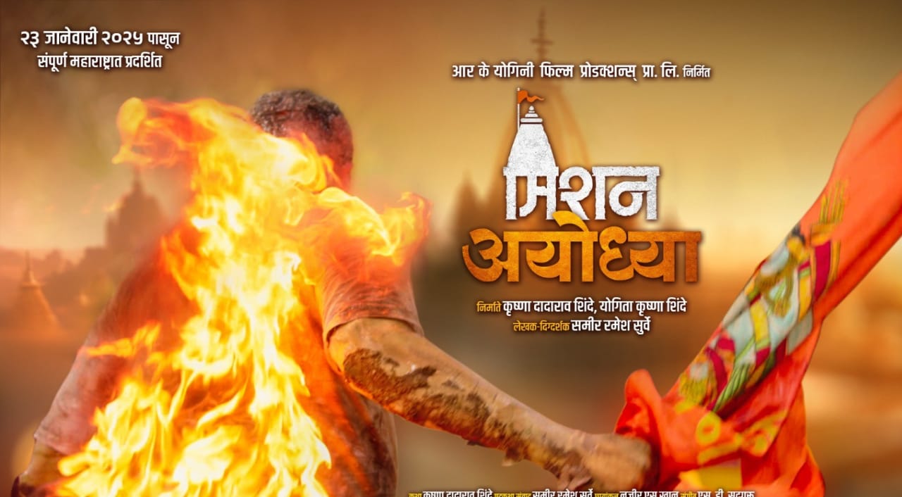 या पोस्टरमध्ये संघर्ष, भक्तिभाव, आणि प्रेरणा यांचा अभूतपूर्व मिलाफ दिसतो. आगीच्या विळख्यात झेंड्याला घट्ट पकडून उभा असलेला व्यक्तीचा संघर्ष रामभक्तांच्या सशक्ततेचे प्रतीक आहे. यातून ‘मिशन अयोध्या’ हा केवळ एक चित्रपट नसून, भक्तिभावाचा सुवर्ण पर्व आहे, हे स्पष्ट होते, असे निर्माते कृष्णा दादाराव शिंदे व योगिता कृष्णा शिंदे यांनी म्हटले आहे.