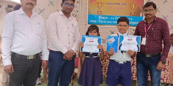 चिमूर पंचायत समितीचे गटशिक्षणाधिकारी रुपेश कांबळे यांचे हस्ते मधूर मेश्राम याला सन्मानपत्र देऊन गौरविण्यात आले.याप्रसंगी प्रमुख अतिथी म्हणून शिक्षण विस्तार अधिकारी विशाल बोधाने, स्वप्नील खांडेकर,टी. आर.महल्ले,केंद्रप्रमुख विनायक औतकर आदी उपस्थित होते.
