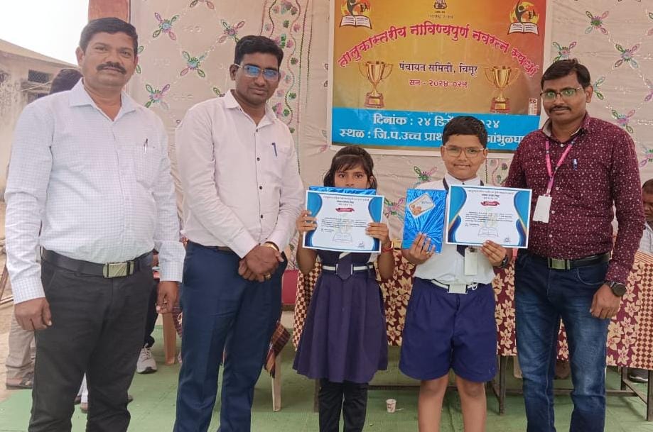 चंद्रपूर :- चंद्रपूर जिल्हा परिषद जिल्हा परिषद शाळांमधील विद्यार्थ्यांच्या सुप्त गुणांना वाव मिळावा,विद्यार्थ्यांच्या सृजनशक्तीला चालना मिळावी या उद्देशाने दरवर्षी नावीन्यपूर्ण नवरत्न स्पर्धेचे आयोजन करीत असते.सत्र २०२४-२५ या शैक्षणिक सत्रातील जिल्हा परिषद चंद्रपूर आयोजित चिमूर तालुकास्तरीय नावीन्यपूर्ण नवरत्न स्पर्धा जिल्हा परिषद उच्च प्राथमिक शाळा,जांभूळघाट येथे संपन्न झाल्या.या स्पर्धा अंतर्गत बुद्धीमापन स्पर्धेत जिल्हा परिषद प्राथमिक शाळा,पारडपारचा विद्यार्थी मधूर हरी मेश्राम हा चिमूर तालुक्यातून पहिल्या पारितोषिकाचा मानकरी ठरला आहे.या स्पर्धात तालुक्यातील १४ केंद्रातील विद्यार्थ्यांनी सहभाग घेतला.
