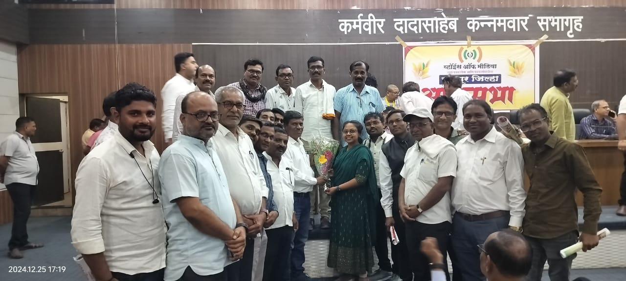 यावेळी विचार मंचावर व्हाईस ऑफ मीडियाचे प्रदेश कार्याध्यक्ष मंगेश खाटीक,विदर्भ अध्यक्ष किशोर कारंजेकर, प्रदेश उपाध्यक्ष संजय पडोळे,जेष्ठ पत्रकार शाम ठेंगळी,प्रा. मणियार,वर्धा जिल्हा अध्यक्ष नरेंद्र देशमुख आदी मान्यवर उपस्थित होते.चिमूर तालुका अध्यक्ष पदाकरिता प्रा. राजू रामटेके व पंकज मिश्रा यांनी उमेदवारी दाखल केली होती, यात दोन्ही उमेदवरांना समान मते मिळाल्यामुळे ईश्वरचिट्ठी काढण्यात आली, यामध्ये प्रा. रामटेके हे विजयी ठरले.सर्व निवड प्रक्रियेत निवडणूक निर्णय अधिकारी म्हणून जितेंद्र जोगड, श्रीहरी सातपुते, आशिष रैच,नरेंद्र देशमुख यांनी जबाबदारी संभाळली.