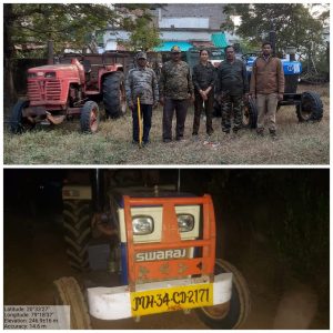चिमूर : – दिनांक 30/12/2024 रोजी पहारे 2:00 वाजता खडसंगी परिक्षेत्रातील कक्ष क्र. 26 (A) FDCM च्या जंगलात वनकर्मचारी व अधिकारी गस्तीवर असतांना जंगलातून अवैधरित्या रेतीची चोरी करणारे सहा (6) ट्रॅक्टर जप्त करून कारवाई करण्यात आली.घटनेचा पंचनामा करीत चौकशीमध्ये ट्रॅक्टर मालक सौ.शिला रामदास रामटेके,रा.बंदर, अनिरुद्ध देवानंद वासनिक,रा.बंदर,गौतम श्रावण वासनिक, रा.बंदर,सौ.सुनंदा गजानन शंडे,रा.खडसंगी,विशाल संजु मुदलकर, रा बंदर तसेच वनवास धनराज पाटील, रा. बंदर यांचे मालकीचे हे ट्रॅक्टर आढळून आले असून पाच ट्रॅक्टर जप्त करण्यात आले व एक ट्रॅक्टर पसार झाले आहे.