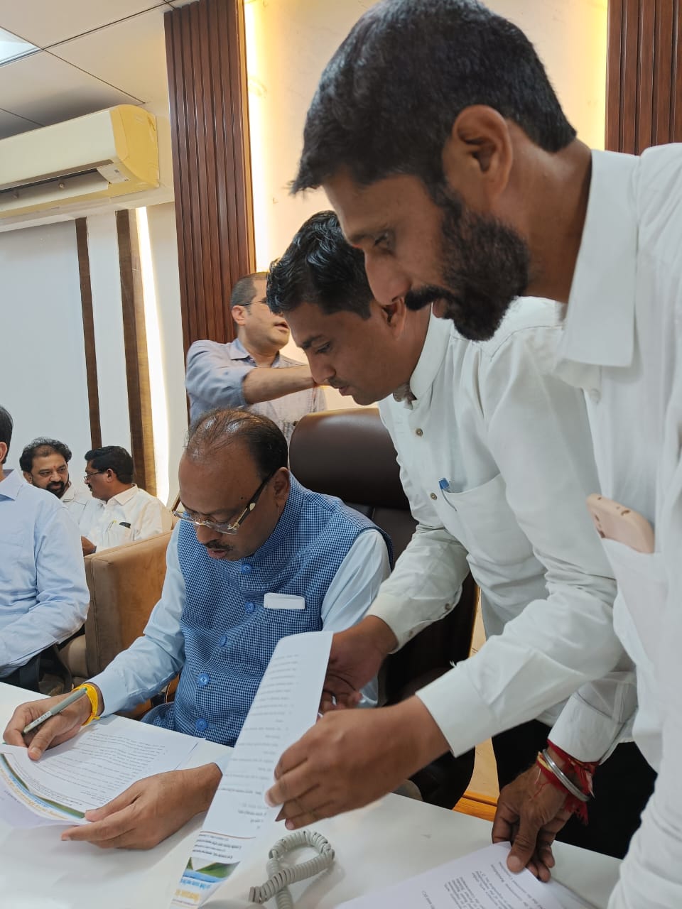 श्रीगोंदा :- राज्यात शेतकऱ्यांच्या विविध प्रश्नांसोबत शेतरस्त्यांचा प्रश्न ज्वलंत बनत चालला अजुन या प्रश्नावर महाराष्ट्र राज्य शिवपानंद शेतरस्ता चळवळीचे प्रणेते शरद पवळे व राज्य समन्वयक दादा साहेब जंगले पाटील यांनी शेतरस्त्यांच्या प्रश्नाकडे सरकार प्रशासणाचे लक्ष वेधण्यासाठी राज्यभर विविध ऐतिहासिक आंदोलनाच्या माध्यमातून न्यायालयीन लढा देत जनजागृती करत सरकारसोबत पत्रव्यवहार करत संवाद साधण्याचे काम सुरू असताना महसुलमंत्री चंदशेखर बावनकुळे यांनीही विषयाला न्याय देण्याची भूमिका घेतल्यामुळे महराष्ट्र राज्य शिव पानंद शेतरस्ता चळवळीचे प्रणेते शरद पवळे, राज्य समन्वयक दादासाहेब जंगले पाटील यांनी मुंबई मंत्रालय येथे मंत्री बावनकुळे साहेब यांना शासनिर्णयाच्या त्रुटी व मुद्दे या विषयावर निवेदन देत चर्चा केली असता मंत्री बावनकुळे साहेब यांनी संबंधीत अधिकाऱ्यांकडे मागण्यांचे निवेदन देत यामधील मुद्दे शासन निर्णयात घेण्याच्या सुचना दिल्या सोबतच उपमुख्यमंत्री अजितदादा पवार साहेब यांनाही निवेदन दिले असताना त्यांनीही संबंधित विभागांना तातडीने लक्ष घालुन प्रश्न सोडवण्याचे आश्वासन दिले निवेदनात राज्यातील सर्व शिव पानंद शेतरस्त्यांच्या हद्द निश्चिती करून दर्जेदार शेतरस्ते करा, तहसिल कार्यालयांतील प्रलंबित शेतरस्ता केसेस तातडीने निकाली काढा,ग्रामशेतरस्ता समित्या स्थापनेचे आदेश तातडीने देवून त्यांचा अहवाल घेवून कार्यवाही करावी,वहिवाटीच्या रस्त्यांचे सर्वेक्षण करून नकाशावर घ्यावेत,शेतरस्त्यांना नंबरी लावुन त्यांचे सर्वेक्षण करावे व नंबरी हवणारांना दंडात्मक कारवाई करावी,मा.उच्च न्यायालय छत्रपती संभाजीनगर दाखल याचिका क्रं.8287/2023 रोजीच्या निकालानुसार राज्यातील सर्व तहसिल कार्यालयांना 60 दिवसांच्या आत शेतरस्ते खुले करण्याचे आदेश द्यावेत,नकाशावरील शासकीय शेतरस्त्यांना वादी म्हणून सरकारचा प्रतिनीधी असावा, वाटपत्रात शेतरसत्याचा उल्लेख झाल्याशिवाय वाटपत्र करू नये, शेतरस्त्या अभावी पडीक राहणाऱ्या जमिनधारकांना विनाअट नुकसान भरपाई द्यावी अशा विविध मागण्या शिवपानंद शेतरस्ता चळवळीचे प्रणेते शरद पवळे, राज्य समन्वयक दादासाहेब जंगले पाटील यांनी चळवळीच्या माध्यमातून राज्य मंत्र्याकडे केल्या आहेत.