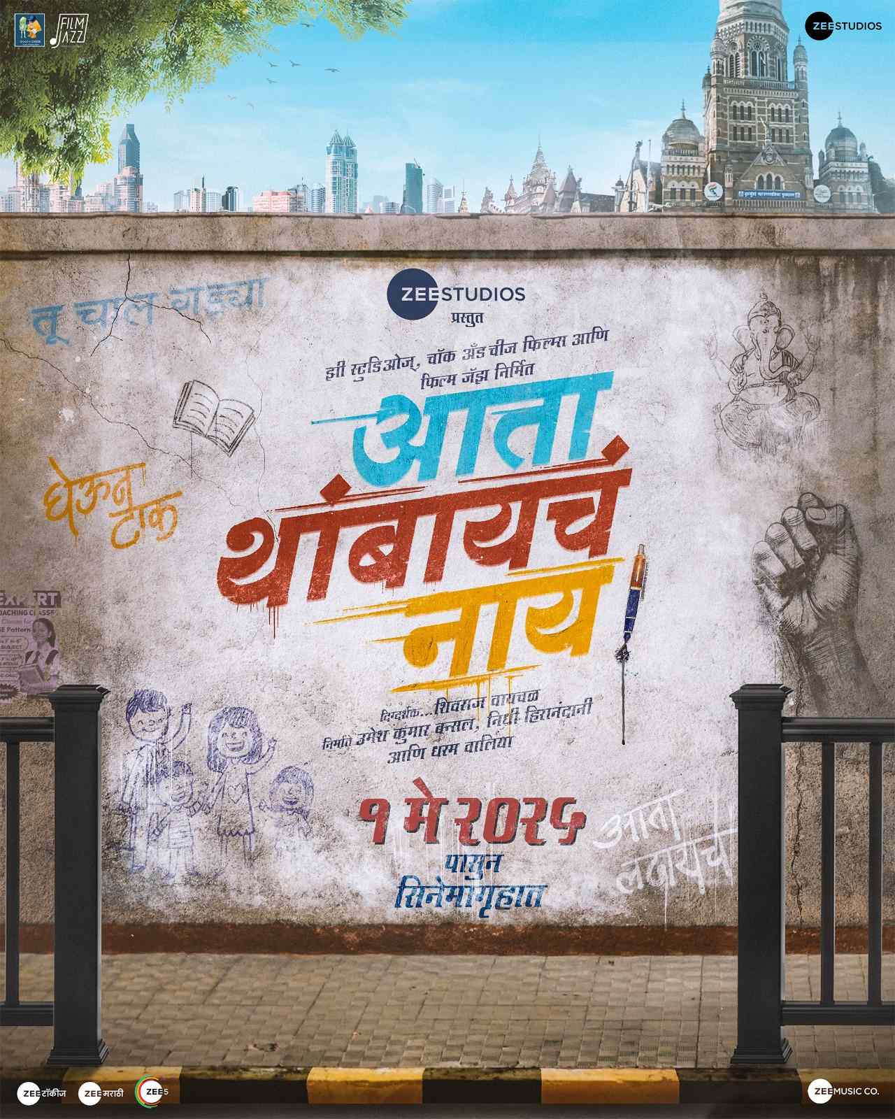 वेगवान रस्त्यावरील एका भिंतीवर तीन ठसठशीत रंगांत लिहिलेले ‘आता थांबायचं नाय!’ हे शीर्षक लहानांपासून मोठ्यांपर्यंत सगळ्यांनाच स्फूर्ती देते. या प्रदर्शित झालेल्या मोशन पोस्टरमधून ऐकू येणारे जादुई संगीत रसिकांना मंत्रमुग्ध करत कमालीचे आकर्षण तयार करीत आहे. दर्जेदार मराठी चित्रपट महाराष्ट्रातील रसिकांच्या मनामनात आणि घराघरात रुजवणाऱ्या ‘झी स्टुडिओज्’ची प्रस्तुती असलेली ही, या वर्षातील सर्वात मोठी घोषणा, ‘झी स्टुडीओज् मराठी’चे व्यवसाय प्रमुख बवेश जानवलेकर यांनी नुकतीच केली.