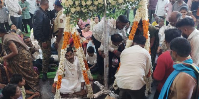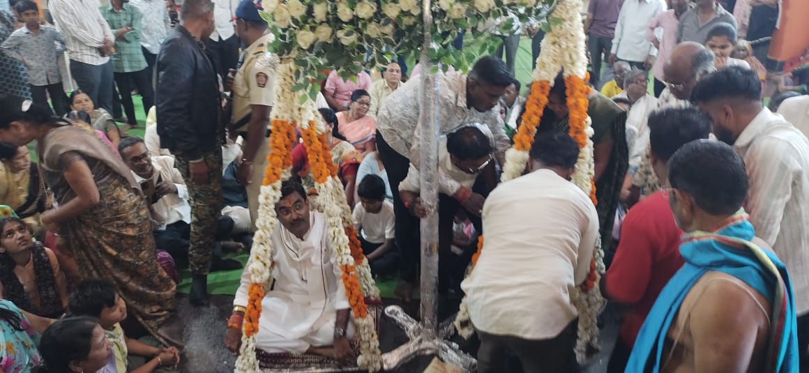 चिमूर :- श्रीहरी बालाजी देवस्थानचे विश्वस्त नीलम राचलवार यांनी आमदार कीर्तीकुमार भांगडीया यांच्या तिसऱ्यांदा विजयासाठी श्रीहरी बालाजी महाराज यांना केलेला नवस बालाजी मंदिरात पेढा तुला कार्यक्रम करून पूर्ण केला.चिमूर विधानसभा क्षेत्राचे आमदार कीर्तीकुमार भांगडीया चिमूर विधानसभा क्षेत्रातून तिसऱ्यांदा निवडून आले. आमदार भांगडीया यांनी गेल्या दहा वर्षांत भरपूर प्रमाणात विकास केला.