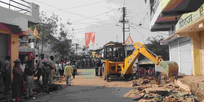 अतिक्रमण धारकांच्या दुकानावर चालविला बुलडोझर