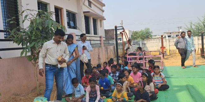 चिमूर :- मूकबधिर विद्यालय चिमूर येथे आईच्या वर्ष श्राद्धाचे औचित्य साधून विद्यार्थ्यांना बुक पेन व फळ खाऊ वितरित केले.अनेक जण आपापल्या पद्धतीने वाढदिवस तथा कोणताही कार्यक्रम मोठ्या थाटामाटात साजरा करत असतो.