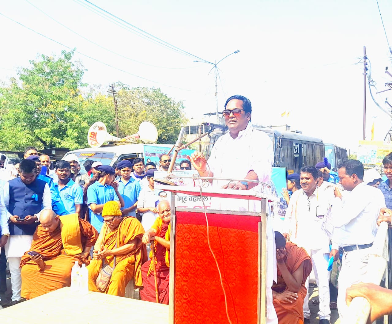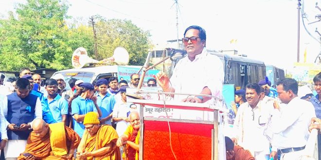 चिमूर:- महाबोधी महाविहाराचे व्यवस्थापन करण्याकरिता तत्कालीन बिहार सरकारने 1949 साली केलेला कायदा रद्द व्हावा म्हणून आपण करत असलेले आंदोलन हे एक विहार मुक्त करावे म्हणून केलेले आंदोलन नव्हे तर मानवाला प्रबुद्ध करणारी व्यवस्था प्रतिगामी शक्तींच्या ताब्यातून मुक्त करण्यासाठीचा लढा आहे. प्रजासत्ताक निर्माण झाल्यावरही संविधान विरोधी कायदे अंमलात ठेवणे हा संविधानद्रोह आहे त्यामुळे ही लढाई एका अर्थाने संविधानिक अधिकार प्राप्त करण्याची लढाई आहे असे उदगार आंबेडकरी विचारवंत तथा प्रसिद्ध साहित्यिक ॲड. भूपेश वामनराव पाटील यांनी चिमूर येथील तहसील कार्यालयावर काढलेल्या भव्य मोर्चाला मार्गदर्शन करताना काढले.
