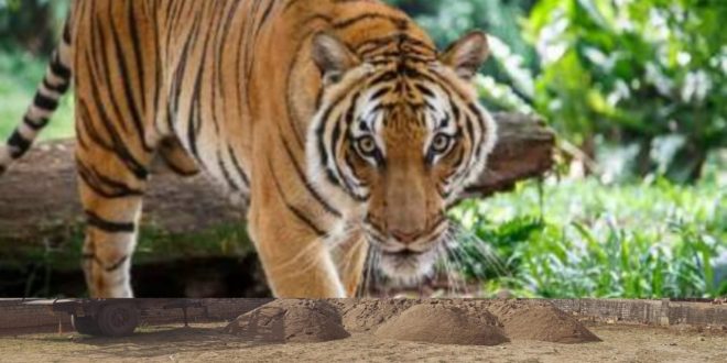 चिमूर :- चिमूर तालुक्यातील पळसगाव, पिपर्डा येथील उमा नदीघाटावर मागील अनेक दिवसांपासून अवैधरित्या रेतीची तस्करी जोमात सुरू आहे. रेती तस्कर रात्रीच्या अंधाराचा फायदा घेत रेतीची तस्करी करीत आहे. गुरुवारी रात्रीच्या अंधारात २० ते २५ हमालांकडून नदीघाटातून रेतीचे उत्खनन व तस्करी सुरू असताना व ट्रॅक्टरमध्ये रेती भरत असताना नदीपात्रात अचानकपणे प्रवेश करीत पट्टेदार वाघाने डरकाळी फोडली असून हमालांवर हल्ला केला. वाघ हमालाच्या नरडीचा घोट घेण्याच्या तयारीत असताना नदीमध्ये रेतीची वाहतूक वाहणारे ट्रॅक्टर आले व ट्रॅक्टरच्या कर्कश आवाजाने वाघाने येथून पळ काढीत जंगलाच्या दिशेने पलायन केले.