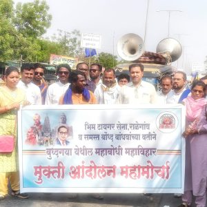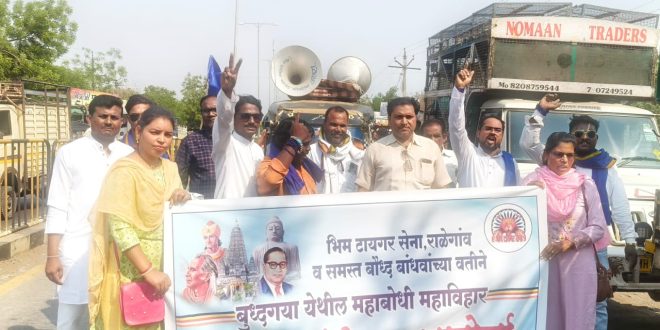 राळेगाव :-राळेगाव तालुक्यातील बौद्ध अनुयायांनी आज दिनांक 28 मार्च रोजी डॉक्टर बाबासाहेब आंबेडकर यांच्या पुतळ्यापासून तहसील कार्यालयासमोर एक दिवसीय मोर्च्याचे आयोजन केले बुद्धगया येथील महाबोधिविहार बौद्ध समुदायाच्या ताब्यात देण्याच्या मागणीला जोरदार पाठिंबा दर्शविला गेल्या महिन्याभरापासून अखिल भारतीय भिक्षु संघ महाबोधी महाविहार मुक्तीसाठी बुद्धगया येथे धरणे आंदोलन करत आहे या आंदोलनाला पाठिंबा देण्यासाठी राळेगाव तालुक्यातील बौद्ध अनुयायी मोठ्या संख्येने एकत्र आले होते धरणे आंदोलनानंतर सर्व समाज बांधवांनी आंदोलन स्थळापासून नारेबाजी करत तहसील कार्यालयापर्यंत मोर्चा काढला त्यानंतर तहसीलदार यांना निवेदन देण्यात आले.