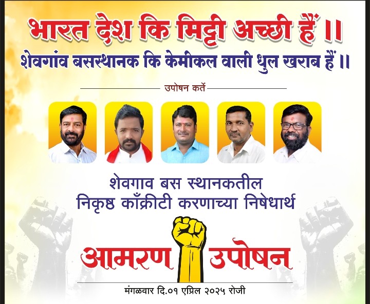 शेवगांव बस स्थानक रॅम्प चे आवारातील निकृष्ट काँक्रीटीकरणा च्या विरोधातील उपोषण