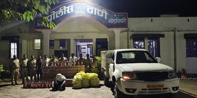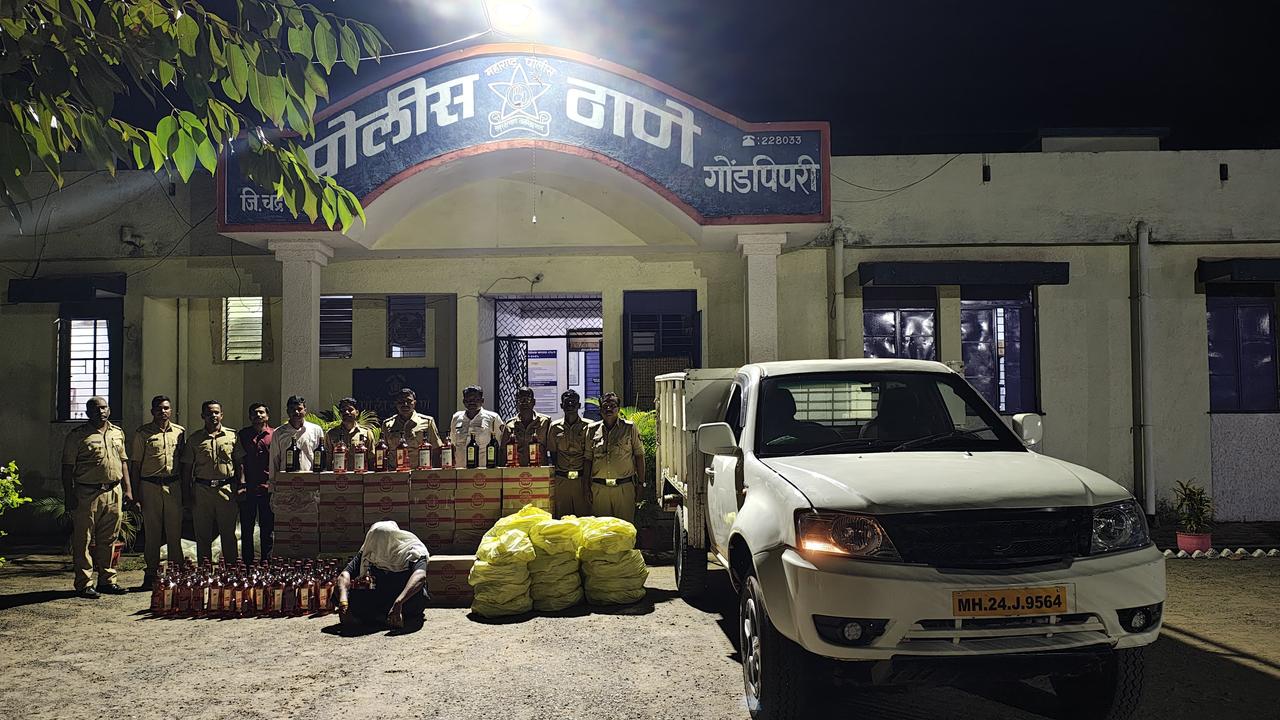 चंद्रपूर :- आज दिनांक १२ एप्रिल, २०२५ रोजी मिळालेल्या गोपनिय माहितीवरुन पोलीस स्टेशन गोंडपिपरी अंतर्गत मौजा विठठलवाडा फाटा येथे नाकाबंदी करुन चारचाकी वाहन पिकअप क्र. एम.एच.२४-जे-९५६४ यास थांबवुन पंचासमक्ष पाहणी केली असता सदर वाहनात विना परवना, अवैधरित्या देशी, विदेशी दारु व बिअर असा एकुण ३,५२,७९०/- रुपयाचा देशी विदेशी दारुचा साठा अवैध रित्या वाहतुक करीत असतांना मिळुन आल्याने आरोपी नामे भावेश दिलीप वानोडे वय २७ वर्ष रा. चंद्रपूर यास अटक करुन त्याचे ताब्यात चारचाकी वाहन पिकअप आणि देशी विदेशी दारुचा साठा असा एकुण ८,५२,७९०/- रुपयाचा माल जप्त करण्यात आला असुन आरोपी विरुध्द महाराष्ट्र दारुबंदी कायद्या अन्वये गुन्हा नोंदविण्यात आला आहे.