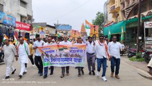 यवतमाळ :- दिनांक 21 मे 2025 ला यवतमाळ जिल्हा काँग्रेस कमिटीच्यावतीने आज दिनांक 21 मे 2025 रोजी डॉ. बाबासाहेब आंबेडकर चौक, यवतमाळ येथे दुपारी 12.00 वाजता “ऑपरेशन सिंदूर” या ऐतिहासिक लष्करी मोहिमेला समर्पित भव्य “तिरंगा यात्रा” चे आयोजन करण्यात आले.कार्यक्रमाची सुरुवात यवतमाळ बस स्थानक चौकातील डॉ. बाबासाहेब आंबेडकर यांच्या पुतळ्याला अभिवादनाने झाली. यावेळी देशाचे माजी पंतप्रधान आणि भारतरत्न राजीव गांधी यांच्या पुण्यतिथीनिमित्त त्यांच्या प्रतिमेस अभिवादन करून त्यांच्या दूरदृष्टी, विज्ञाननिष्ठा व आधुनिक भारतासाठीच्या योगदानाचा स्मरण करण्यात आला.