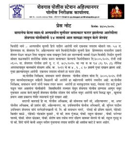 पोलीस निरीक्षक, समाधान नागरे शेवगाव पोलीस स्टेशन यांना दि. ३०/०५/२०२५ रोजी गुप्त बातमीदाराकडुन माहिती मिळाली की आरोपी हा बाहेरगावी जाणेचे तयारीत आहे.पोलीस निरीक्षक, समाधान नागरे यांनी पथक तयार करुन आरोपी हा भातकुडगाव फाटा, नेवासा रोड कडे ट्रकने पळुन जात असतांना पोलीसांनी शिताफितीने ताब्यात घेवुन शेवगाव पोलीस ठाण्यास आणुन नमुद गुन्हयात अटक केले. यापुर्वी शेवगाव पोलीस स्टेशन येथे वरील नमुद आरोपी याचे विरुद्ध खुन, खुनाचा प्रयत्न अशा प्रकारचे गंभीर स्वरुपाचे गुन्हे दाखल आहे. सदरची कारवाई नवनिर्वाचित पोलीस अधिक्षक सोमनाथ घार्गे अहिल्यानगर,अपर पोलीस अधिक्षक,प्रशांत खैरे,अहिल्यानगर,उपविभागीय पोलीस अधिकारी, सुनिल पाटील उपविभाग शेवगाव यांचे मार्गदर्शनाखाली शेवगांवचे कर्तव्यदक्ष पो.नि.समाधान नागरे, पोसई प्रविण महाले, पोहेकॉ/किशोर काळे, पोहेकॉ/ चंद्रकांत कुसारे, पो कॉ. शाम गुंजाळ, पोकॉ. राहुल खेडकर, पोकॉ. धनेश्वर पालवे, पोकॉ. संपत खेडकर,पोकॉ. संतोष वाघ तसेच नगर दक्षिण सायबर सेलचे पो कॉ. राहुल गुडडु व पो कॉ. शिंदे यांनी केली असुन वरील गुन्हयाचा तपास स.पो.नि.अशोक काटे हे करत आहेत.