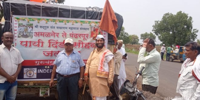 चोपडा :- येथील UAIPM FOUNDETION द्वारा (उदयकुमार अग्निहोत्री इंडिपेन्डेन्ट प्रेस मिडिया फौन्डेशन ) मार्फत खान्देशातील प्रती पंढरपूर समजले जाणारे अमळनेर येथील वाडी संस्थानचे सखाराम महाराजांचे गादीपती श्री प्रसाद महाराज यांच्या आषाढी पायी वारीला सुरूवात झाली असता त्या निमित्ताने अमळनेर ला तुळशीबागेत महाराजांन बरोबर पायी वारी करणारे व महाराजांना निरोप देणारे भक्तगण यांची आज मंदीयाळी जमली होती.
