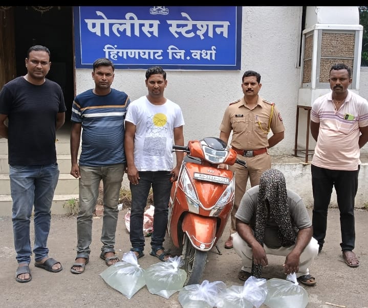 वर्धा :- आज दि.20/07/25 रोजी पोलीस स्टेशन हिंगणघाट येथील पथकाला माहीती मिळाली की, आरोपी अविनाश शरबत भोसले वय 40 वर्ष हा त्याचे पत्नीसह तरोडा पारधी बेडा येथून हिंगणघाट कडेगावठी मोहा दारू ची मोटार सायकलने वाहतूक करीत येत आहे अश्या माहीती वरून हिगणघाट पोलीस स्टेशन येथील पोलीस हवालदार प्रविन बोधाने, स्वप्नील जिवने,पोलीस अमलदार प्रमोद डडमल,सागर सामृतवार यांनी नांदगाव चौक उडान पूल वर नाकेबंदी करुन आरोपी अविनाश शरबत भोसले व त्याची पत्नी सौ अनिता अविनाश भोसले रा तरोडा याचेवर प्रोरेड केला असता आरोपी हे त्याचे ताब्यातील टीव्हीएस ज्युपिटर मोपेड गाडी क्रमांक.एम.एच 32 ए.डब्लु 0085 ने गावठी मोहा दारुची वाहतुक करतांना पंचासमक्ष मिळुन आल्याने आरोपीचे ताब्यामधुन 6 प्लास्टिक पन्नीमध्ये 60 लिटर गावठी मोहा दारू प्रती लिटर 100 रू प्रमाणे 6000 रू.व टीव्हीएस मोपेड जुपिटर गाडी क्र.एम.एच 32 ए डब्लु 0085 किंमत 60,000 रु ,असा एकुण 66000 चा माल अवैधरीत्या मिळुन आल्याने जागीच मोका जप्ती पंचनामा कारवाई करून आरोपी विरूद्ध, पो.स्टे. हिंगणघाट येथे दारूबंदी कायद्यान्वये कारवाई केली.
