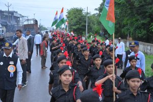या रॅलीत माजी सैनिक संघाच्या पदाधिकारी सदस्यांसह शहरातील पद्मभूषण बाळासाहेब भारदे रेसिडेन्सी अल आबासाहेब काकडे त्रिमूर्ती पावन प्रतिष्ठान आदर्श माध्यमिक विद्यालय ज्ञानदीप विद्यामंदिर प्रशाळेतील हजारो विद्यार्थी सहभागी झाले होते विद्यार्थ्यांच्या रॅलीवर ठीक ठिकाणी पुष्पवृष्टी करण्यात आली तहसील कार्यालयापासून निघालेली रॅली क्रांती चौक बस स्थानक चौक महामानव डॉक्टर बाबासाहेब आंबेडकर चौक या मार्गे न्यू आर्ट्स कॉमर्स अँड सायन्स महाविद्यालयाच्या प्रांगणात दाखल झाल्यानंतर महाविद्यालयाच्या राजश्री शाहू महाराज सभागृहात प्रांताधिकारी प्रसाद मते यांच्या अध्यक्षतेखाली भारतीय जनता पक्षाचे प्रदेश चिटणीस अरुण मुंडे,नवनिर्वाचित तहसीलदार आकाश दहाडदे,पोलीस निरीक्षक संतोष मुटकुळे, गटविकास अधिकारी सोनल शहा, नगरपरिषदेच्या मुख्याधिकारी विजया घाडगे, सार्वजनिक बांधकाम विभागाचे उप अभियंता प्रल्हाद पाठक, वन अधिकारी सचिन घनवट, माजी उपनगराध्यक्ष वजीर पठाण सामाजिक कार्यकर्ते सुनील रासने स्वाभिमानी शेतकरी संघटनेचे जिल्हा उपाध्यक्ष दत्तात्रय फुंदे सेवानिवृत्त क्रीडा शिक्षक बबनराव धावणे कल्याणराव भागवत वेगवेगळ्या माध्यमिक विद्यालयातील प्राचार्य शिक्षक महाविद्यालयाचे उप प्राचार्य डॉक्टर युवराज सुडके भाऊसाहेब अडसरे भूमी अभिलेख कार्यालयाचे बाळासाहेब कोकणे भारदे माध्यमिक विद्यालयाचे एनसीसी विभागाचे कमांडर भाऊसाहेब शिंदे माजी सैनिक संघाचे तालुकाध्यक्ष विनोद शेळके उपाध्यक्ष शिवाजी बडे सचिव भक्तराज केदार यांच्या प्रमुख उपस्थितीत पार पडलेल्या आजी-माजी सैनिकांच्या अभिवादन सभेत प्रांताधिकारी प्रसाद मते यांनी देशाच्या संरक्षणासाठी प्रसंगी बलिदान केलेले आजी-माजी सैनिक समाजाचा अनमोल पद्धतीचा ठेवा आहे.