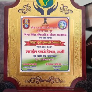 स्माईल फाउंडेशन वणी च्या कार्याला शासनाचा गौरव