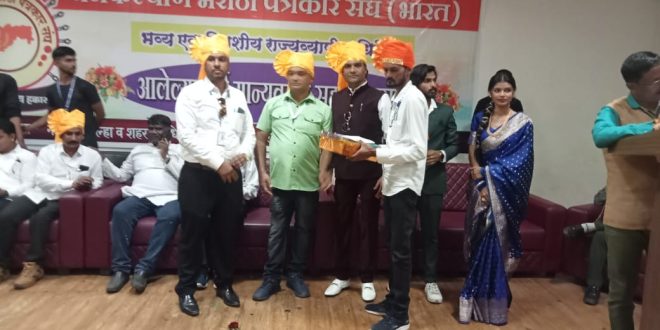 यवतमाळ :- जनकल्याण मराठी पत्रकार संघाचे पहिले राज्य व्यापी अधिवेशन नासिक येथिल निसर्ग रम्य वातावरण असणार्या गरुडझेप अँकाडमी येथे मोठ्या उत्साहात संपन्न झाले या वेळी जनकल्याण मराठी पत्रकार संघाच्या सर्व पदाधिकारी यांना अपघाती विमा योजना, पत्रकार बांधवांच्या पत्नी साठी पैठणी साडी व आकर्षक भेट वस्तू प्रमुख पाहुणे यांच्या हस्ते देण्यात आले. कार्यकमाचा अध्यक्षस्थानी जनकल्याण मराठी पत्रकार संघाचे संस्थापक अध्यक्ष संतोष जाधव होते तर प्रमुख पाहुणे म्हणून नासिक ग्रामिण पोलीस दलाचे पोलीस उप अधिक्षक वासुदेव देसले, दै महासागर चे संपादक जेष्ठ पत्रकार प्रा जयंत महाजन, जागर जनस्थान चे मुख्य संपादक समिर चव्हाण, गरुडझेप अँकाडमी चे व्यवस्थापक प्रा लक्ष्मण डोळस, माजी नगरसेवक दिनकर आण्णा पाटील, दै महासागर चे कार्यकारी संपादक सुधीर उमराळकर, सामाजिक कार्यकर्ते गणेश सावंत,अल्पसंख्यांक सेलचे तन्वीर तांबोळी, गुड्डू सय्यद यांच्या सह जनकल्याण मराठी पत्रकार संघाचे राष्ट्रीय कार्याध्यक्ष रफिक सैयद, महाराष्ट्र राज्य अध्यक्ष देविदास बैरागी, राष्ट्रीय सल्लागार अन्वर पठाण, उत्तर महाराष्ट्र अध्यक्ष प्रकाश बागुल, नासिक जिल्हा कार्याध्यक्ष अकिल पटेल, नासिक जिल्हा महिला विभागाच्या जिल्हा अध्यक्ष वृषाली साळुंकी, नासिक शहर अध्यक्ष शोहेब शेख यांच्या सह पोलीस मित्र समिती चे राज्य अध्यक्ष आनंद दाणी, दिव्यांग सेवा समिती चे राज्य अध्यक्ष सुकदेव खुर्दळ, अन्याय अत्याचार निवारण समिती चे राज्य अध्यक्ष कल्याणी धोंडगे आदी व्यासपीठावर उपस्थित होते.