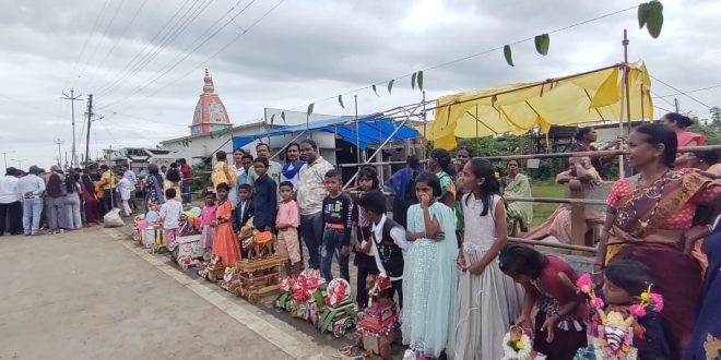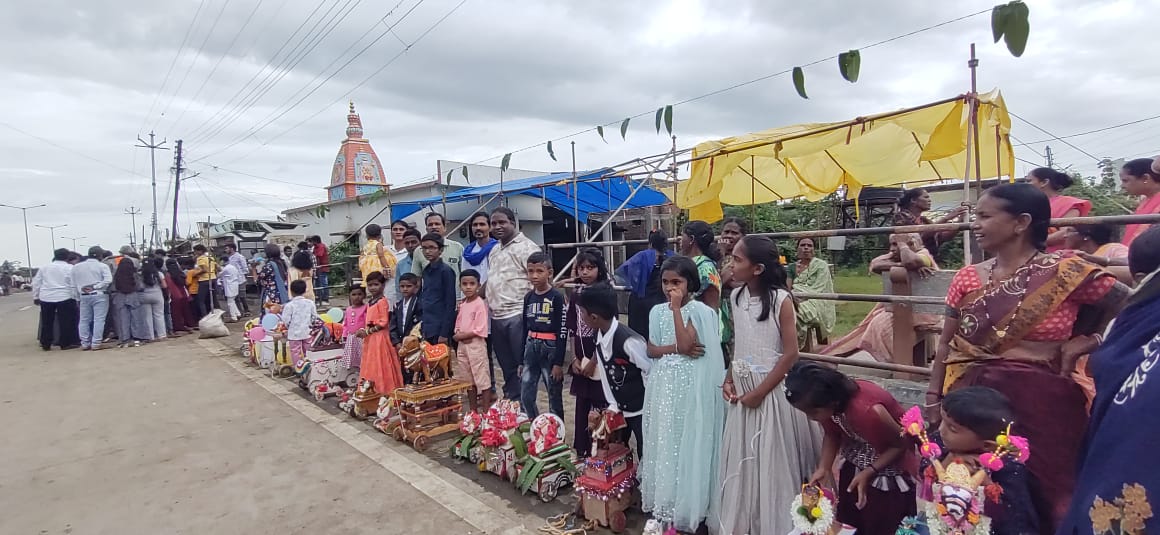 चिमूर : – दिनांक. २३/०८/२०२५ पिंपळनेरी नवीन वस्ती येथे दरवर्षी प्रमाणे यंदाही तान्हा पोळा मोठ्या उत्साहात संपन्न झाला. तान्हा पोळा हा बैल पोळ्याच्या दुसऱ्या दिवशी साजरा केला जातो. या दिवशी लहान मुले लाकडी बैलांना सजवून त्यांची मिरवणूक काढतात. मोठ्या बैलांना हाताळू न शकणाऱ्या मुलांसाठी हा सण खास असून, त्यांच्या उत्साहासाठी आणि हौसेसाठी हा ‘तान्हा पोळा’ भरवला जातो.