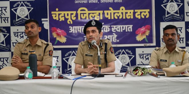चंद्रपूर :- दिनांक ३० ऑगस्ट, २०२५ रोजी दुपारी पोलीस मुख्यालय चंद्रपूर येथे श्री गणेश उत्सावाच्या पार्श्वभुमीवर एक महत्वपूर्ण आढावा बैठक आयोजित करण्यात आली. सदर बैठकीचे अध्यक्षस्थानी संदीप पाटील, विशेष पोलीस महानिरीक्षक, नागपूर परिक्षेत्र, नागपूर यांनी भुषविले. विशेष पोलीस महानिरीक्षक नागपूर परिक्षेत्र नागपूर यांच्या संकल्पनेने जिल्हयात एक Social Harmony (सामाजिक सलोखा) नावाने व्हॉट्सअॅप ग्रुप तयार करण्यात आले असुन त्यात जिल्हयातील प्रतिष्ठीत जबाबदार नागरिकांना समाविष्ठ करण्यात आले असुन सदर गृप सदस्य, जिल्हा शांतता समिती सदस्यांसह इतर मान्यवर व प्रिन्ट अॅण्ड इलेक्ट्रानिक मिडीयाचे पत्रकारांसोबत चर्चा करण्याचे उद्देशाने सदर आढावा बैठकीचे आयोजन करण्यात आले.