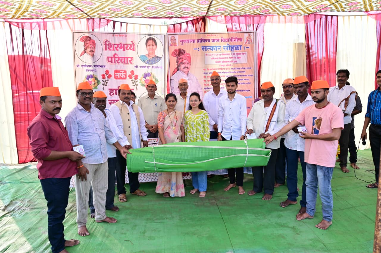 चिमूर :- चिमूर तालुक्यातील मौजा पिंपळनेरी येथील शांतिनगर हनुमान मंदिर परिसरात दिनांक २ नोव्हेंबर २०२५ रोजी रविवारच्या दिवशी गुणवत्ता प्राविण्य प्राप्त मेरिट विद्यार्थीनींचा सत्कार सोहळा उत्साहात पार पडला. हा कार्यक्रम ज्ञानेश्वर उर्फ नाना शिरभय्ये यांच्या वतीने सामाजिक बांधिलकी जोपासत व धार्मिक कार्यात योगदान देत आयोजित करण्यात आला होता.गोंडवाना विद्यापीठ गडचिरोली आणि राष्ट्रसंत तुकडोजी महाराज महाविद्यालय, चिमूर येथील २०२४-२५ सत्रातील गुणवंत विद्यार्थीनींचा या सोहळ्यात सत्कार करण्यात आला. यामध्ये कु. अक्षया बापूराव वाकूळकर (बी.कॉम.) – द्वितीय क्रमांक, कु. प्रियंका विनेश शिरभय्ये (एम.ए. अर्थशास्त्र) – तृतीय क्रमांक, कु. मयुरी वसंता चभोर (एम.कॉम.) – दहावा क्रमांक या विद्यार्थीनींचा प्रमुख अतिथी मान्यवरांच्या हस्ते गुरुदेव टोपी, शिल्ड, प्रशस्तीपत्र व ‘ग्रामगीता’ देऊन गौरव करण्यात आला.