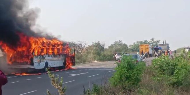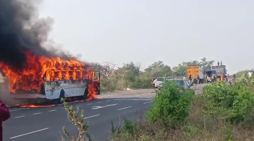 काही क्षणांतच बसने पेट घेतला. स्थानिक नागरिक आणि वाहनचालकांनी मदत करून आगीवर नियंत्रण मिळवले, मात्र बसचा मोठा भाग जळून खाक झाला.पोलिस आणि अग्निशमन दलाच्या पथकाने घटनास्थळी धाव घेतली. आग पूर्णपणे विझवण्यात यश आले. अपघातामुळे रस्त्यावर काही काळ वाहतूक कोंडी निर्माण झाली. पोलिसांनी प्रकरणाची चौकशी सुरू केली असून, शॉर्ट सर्किटची कारणे तपासली जात आहेत.प्रवाशांमध्ये काहीजण किरकोळ जखमी झाले असून, त्यांना जवळच्या रुग्णालयात दाखल करण्यात आले. घटनेची अधिक माहिती मिळण्यासाठी कुही पोलिसांचा तपास सुरू आहे.