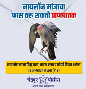 नागरीकांना आवाहन करण्यात येते की, जो कोणी धाउक/किरकोळ व्यापारी नायलॉन मांजा बाळगतांना किंवा विक्री करतांना किंवा साठवणुकदार आढळून आल्यास तात्काळ पोलीस नियंत्रण कक्ष चंद्रपूर येथील पोलीस हेल्पलाईन ११२ वर तात्काळ संपर्क करुन त्याबाबतची माहिती दयावी.