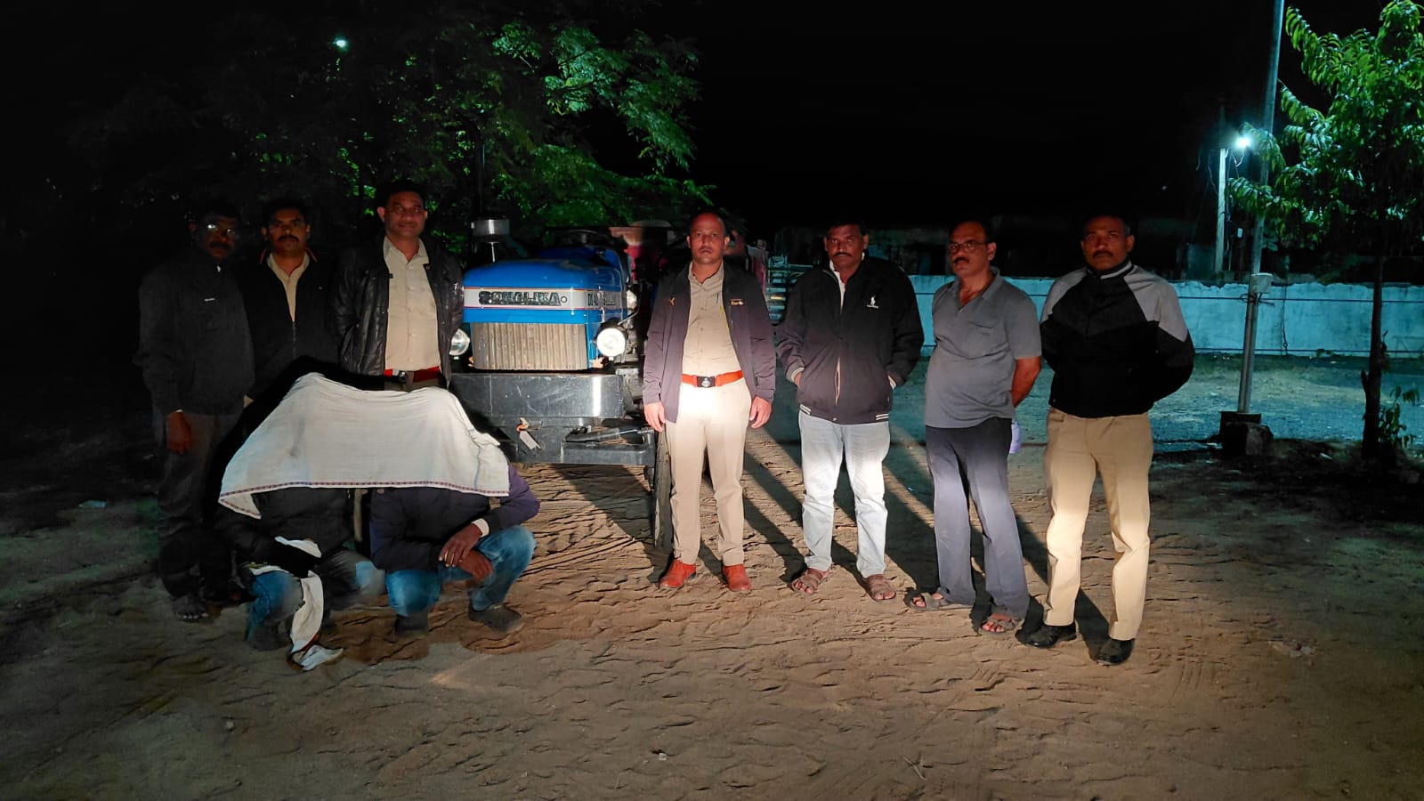 चंद्रपूर/चिमूर :- आज दिनांक ११ डिसेंबर २०२५ रोजी मिळालेल्या गोपनिय माहितीच्या आधारे भिसी पोलीसांनी भिसी ते जांभुळघाट जाणाऱ्या रोडवर कॅनलजवळ नाकाबंदी करुन सापळा रचुन अवैधरित्या गौण खनिज (रेती) ची उपसा करुन चोरटी वाहतुक करीता असलेल्या एका विना क्रमांकाची ट्रॅक्टर ट्रॉलीसह पकडुन रेती वाहतुक करणाऱ्या आरोपी नामे (१) वैभव प्रकाश कुंभरे वय २९ वर्ष रा. बोळधा (२) लक्ष्मण मारोती शिवरकर वय ५२ वर्ष रा. पारडपार यांना ताब्यात घेवुन त्यांचेविरुध्द पोलीस स्टेशन भिसी येथे भारतीय न्याय संहिता-२०२३ आणि म.ज.म.स. व मो.वा.का. चे विविध कलमान्वये गुन्हा नोंदविण्यात आला.