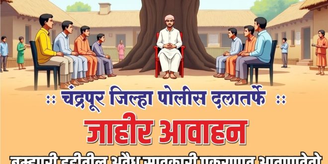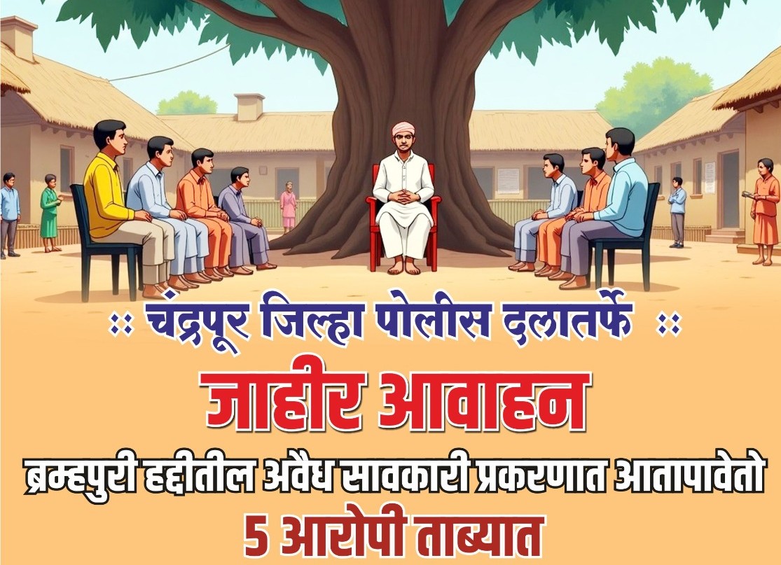 चंद्रपूर जिल्हयातील नागरीकांना आवाहन करण्यात येते की, अशा प्रकारे जर कोणी अवैध सावकार आपल्या कडुन मुद्दलाचे पैश्या पोटी अव्वाचे सव्वा व्याज आकारुन आपली व कुटूंबियांची आर्थीक, शारिरीक व मानसिक छळवणुक करुन शोषण करीत असेल तर चंद्रपूर जिल्हा पोलीस नियंत्रण कक्षाचे 112 किंवा 7887890100 यावर माहिती दयावी. आपले नांव गोपनिय ठेवण्यात येईल तसेच अवैध सावकारांविरुध्द कठोर कायदेशीर कारवाई करण्यात येईल.