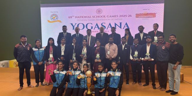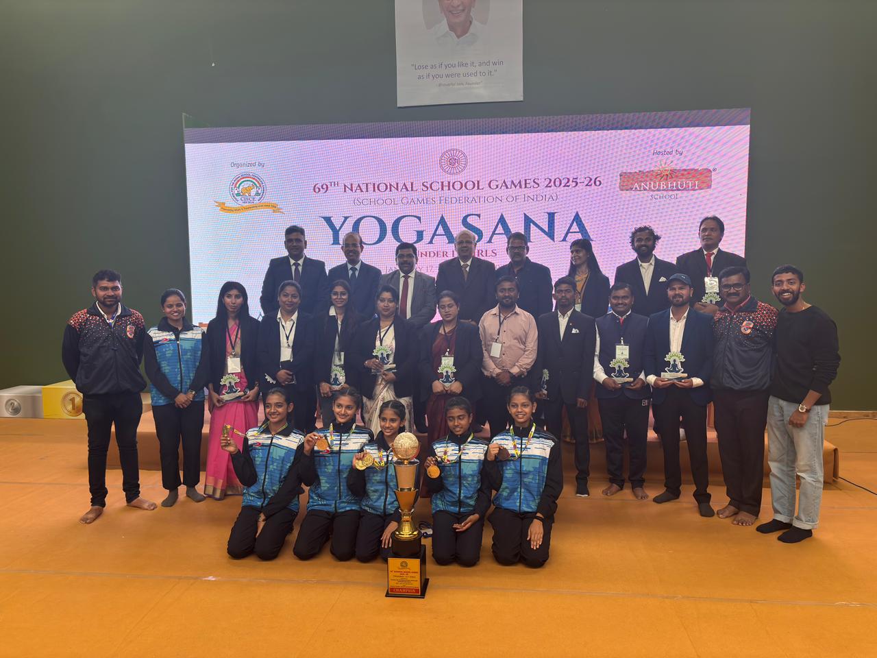चंद्रपूर :- जळगावातील अनुभूती निवासी स्कूलमध्ये झालेल्या १७ वर्षाखालील मुलींच्या राष्ट्रीय योगासन स्पर्धेत महाराष्ट्राच्या संघाने विजेतेपद मिळवले. उपविजेता पश्चिम बंगालचा संघ ठरला. तिसरा क्रमांक सीआयएससीईच्या संघाला मिळाला. महाराष्ट्रातील मुलींनी ट्रॅडिशनल सिंगल, आर्टिस्टिक पेअर, रिदमिक पेअर या तीन प्रकारात सुवर्णपदक पटकवले. आर्टिस्टिक सिंगल प्रकारात पश्चिम बंगालला सुवर्णपदक तर महाराष्ट्राला कांस्य पदक मिळाले.