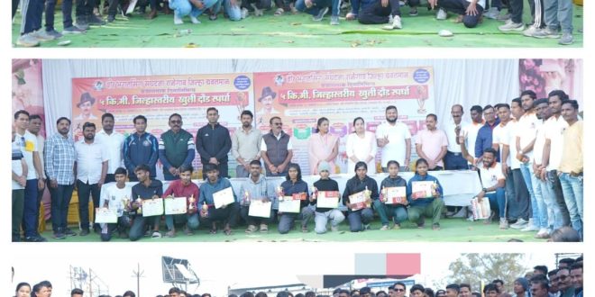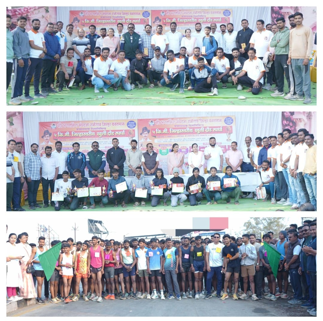 राळेगाव :- वीर भगतसिंग यांच्या विचारांना अभिवादन करत युवकांना खेळाकडे वळविणे तसेच व्यसनमुक्त जीवनाचा संदेश देण्याच्या उद्देशाने वीर भगतसिंग संघटना, राळेगाव यांच्या वतीने जिल्हास्तरीय रनिंग स्पर्धेचे आयोजन करण्यात आले होते. या स्पर्धेला जिल्हाभरातून मोठ्या संख्येने स्पर्धकांचा उत्स्फूर्त प्रतिसाद लाभला असून प्रमुख पाहुणे व अध्यक्षांच्या वतीने प्रतिमेचे पूजन व मान्यवरांचे स्वागत करून या स्पर्धेची सुरुवात करण्यात आली. 5km, व 3km रनिंग साठी वीर भगतसिंग चौक, ते रावेरी रोडवरील पेट्रोल पंपापर्यंत आणि पुन्हा वीर भगतसिंग चौक येथे समारोप अशी मार्गरेषा तयार करण्यात आली असून स्पर्धेत एकूण ३५१ मुले-मुली चा सहभाग झाल्याची नोंद करण्यात आले.