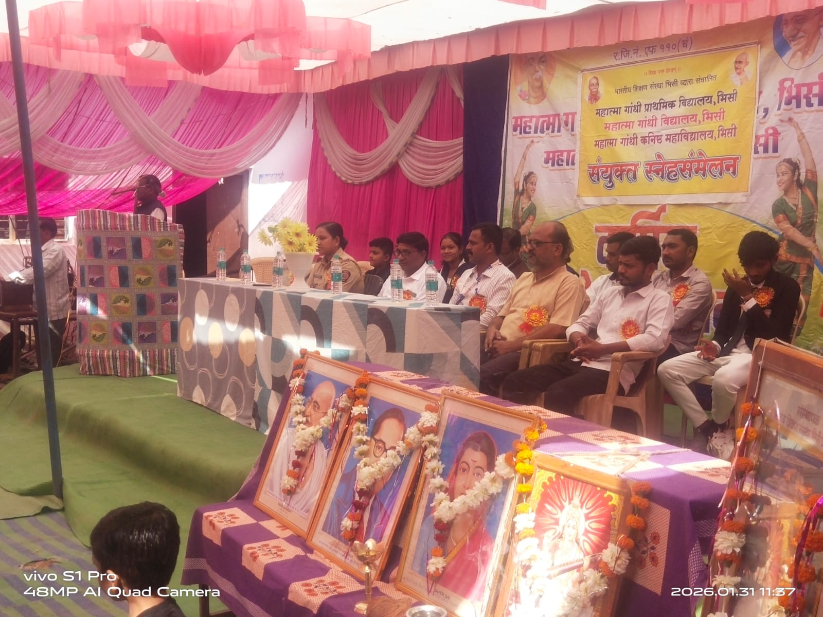 भारतीय शिक्षण संस्था भिसी व्दारा संचालीत महात्मा गांधी प्राथमीक विद्यालय, विद्यालय तथा कनिष्ठ महाविद्यालय भिसी यांच्या संयुक्त विद्यमानाने वार्षिक स्नेहसंम्मेलन व माजी विद्यार्थी मेळाव्याचे आयोजन करण्यात आले होते. दिनांक 31 जानेवारी ते 2 फेब्रुवारी दरम्यान तिन दिवसीय कार्यक्रमाचे आयोजन करण्यात आले होते. कार्यक्रमाच्या पहील्या दिवशी स्नेहसंम्मेलन व माजी विद्यार्थी मेळाव्याचे उद्घाटन करण्यात आले. यावेळी कार्यक्रमाचे उद्घाटक आंबेनेरी केन्द्र प्रमुख ताराचंद रामटेके, कार्यक्रमाचे अध्यक्ष पो. शि.पिल्लेवान मॅडम, प्रमुख अतिथी नगरसेवक अक्षय नागपूरे, रूपेश जांभुळे, मंजुताई रामटेके, वृंदा खडसंग,भिसी व्यापारी असोशिएशन चे अध्यक्ष व पत्रकार पंकज मिश्रा, वामन गेडाम, हिरालाल तुंबेकर मंचावर उपस्थीत होते.