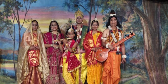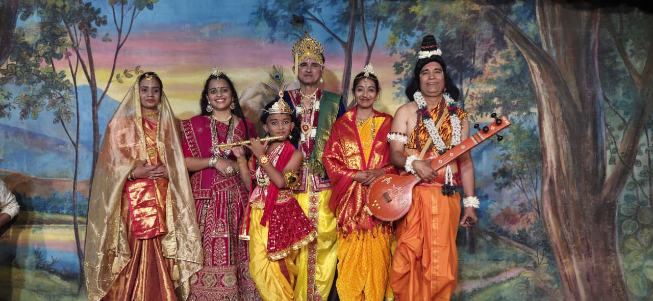 सदर नाटकाची निर्मिती खान्देश नाट्य प्रतिष्ठान, जळगाव यांनी केली असून त्यात भुषण खैरनार ( सुत्रधार व कृष्ण ) कु.मयुरी हरीमकर ( नटी-१ व रुक्मिणी ) सौ.प्राची चौधरी ( नटी-२ व सत्यभामा ) संजय कुलकर्णी ( नारद ) कु. स्वाती डहाळे ( राधा ) आणि कुमार राम चौधरी ( बाळकृष्ण ) यांच्या भुमिका केल्या आहेत. त्यांना साथसंगत राजेंद्र माने ( संवादिनी ) भूषण गुरव ( तबला ) दर्शन गुजराथी ( पखवाज,ढोलकी ) राजेश पुराणिक ( टाळ ) तंत्रज्ञ शरद भालेराव ( नेपथ्य ) पीयूष रावळ ( प्रकाशयोजना ) प्रबुद्ध भालेराव ( पार्श्वसंगीत ) सौ.मीनाक्षी पाटील रंगभूषा ) सौ.नुपूर चांदोरकर-खटावकर ( वेशभूषा ) सौ.मधुवंती देशमुख,सौ.रेणुका जोशी ( रंगमंच व्यवस्था ) ह्या बाजू सांभाळल्या. संपूर्ण टीमचे सर्वत्र अभिनंदन होत आहे.