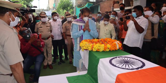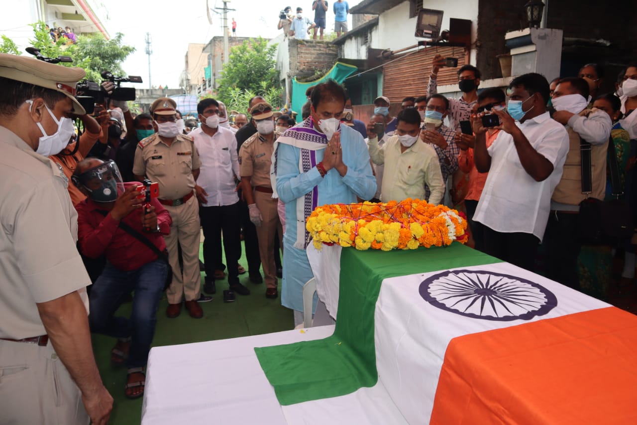नागपूर, दि. 25: शहीद जवान नरेश उमराव बडोले यांच्या पार्थिवावर आज डिगडोह स्मशानभूमी येथे शासकीय इतमामात अत्यंत शोकाकुल वातावरणात अंत्यसंस्कार करण्यात आले. जम्मू काश्मीर मधील बडगाम जिल्ह्यातील चाडूरा भागातील बडीपूरा येथे 24 सप्टेंबर 2020 रोजी सकाळी झालेल्या अतिरेक्यांच्या हल्ल्यात येथील जवान बडोले शहीद झाले आहेत.