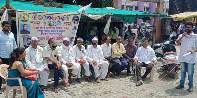 चिमूर :- स्वतंत्र विदर्भ राज्य निर्माण करण्याकरिता तसेच चिमूर जिल्हा निर्मिती करिता विदर्भ राज्य आंदोलन समिती चिमूरच्या वतीने नवीन बसस्थानक, तहसील कार्यालय समोर रास्ता रोको व जेल भरो आंदोलन करण्यात आले.
