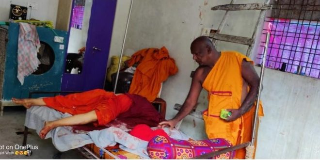 नागपूर : भंते भदंत धम्मानंद थेरो यांनी भंते सामनेर बुद्ध प्रियावर उर्फ कुसुम सुनील चव्हाण (वय ४५) भाजी कापण्याच्या चाकूने गळ्यावर सपासप वार करुन तोंडावर हातोडा मारून हत्या केली. घटनास्थळावरून चाकू, हातोडा जप्त करण्यात आला. आरोपी बोधी धम्मानंद थेरो यांच्यावर गुन्हा दाखल केला असून, अटक करण्यात आली.