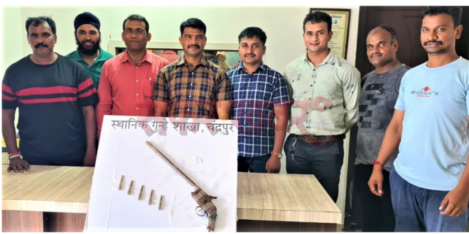 चंद्रपूर :- चंद्रपूर येथील लखमापूर छत्तीसगढ़ी मोहल्ल्यातील रुकधन किराणा दुकानचे – मालक रुकधन परसराम साहु या व्यक्तीने आपल्या राहत्या घरी देशी बनावटीची अग्निशस्त्र बेकायदेशीर लपवुन ठेवल्याची माहिती गोपनीय सुत्रांकडून प्राप्त झाली, माहिती मिळताच स्थानिक गुन्हे शाखेचे पथक मिळालेल्या माहितीनुसार, तत्काळ रवाना झाले व रुकधन किराणा दुकान येथे पोहोचून त्याचे दुकानात मालक रुकधन परसराम साहु वय 52 वर्ष रा. लखमापूर वार्ड क्रमांक 3 चे छत्तीसगढ झोपडपट्टी, चंद्रपूर यांचे घराची झडती घेतली असता त्यांचे घरझडतेमध्ये एक देशी बनावटीचे लाँग बॅरल पिस्टल व पाच जिवंत काडतुसे मिळाली