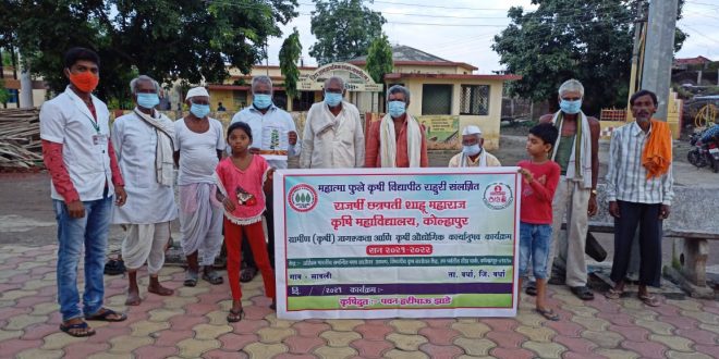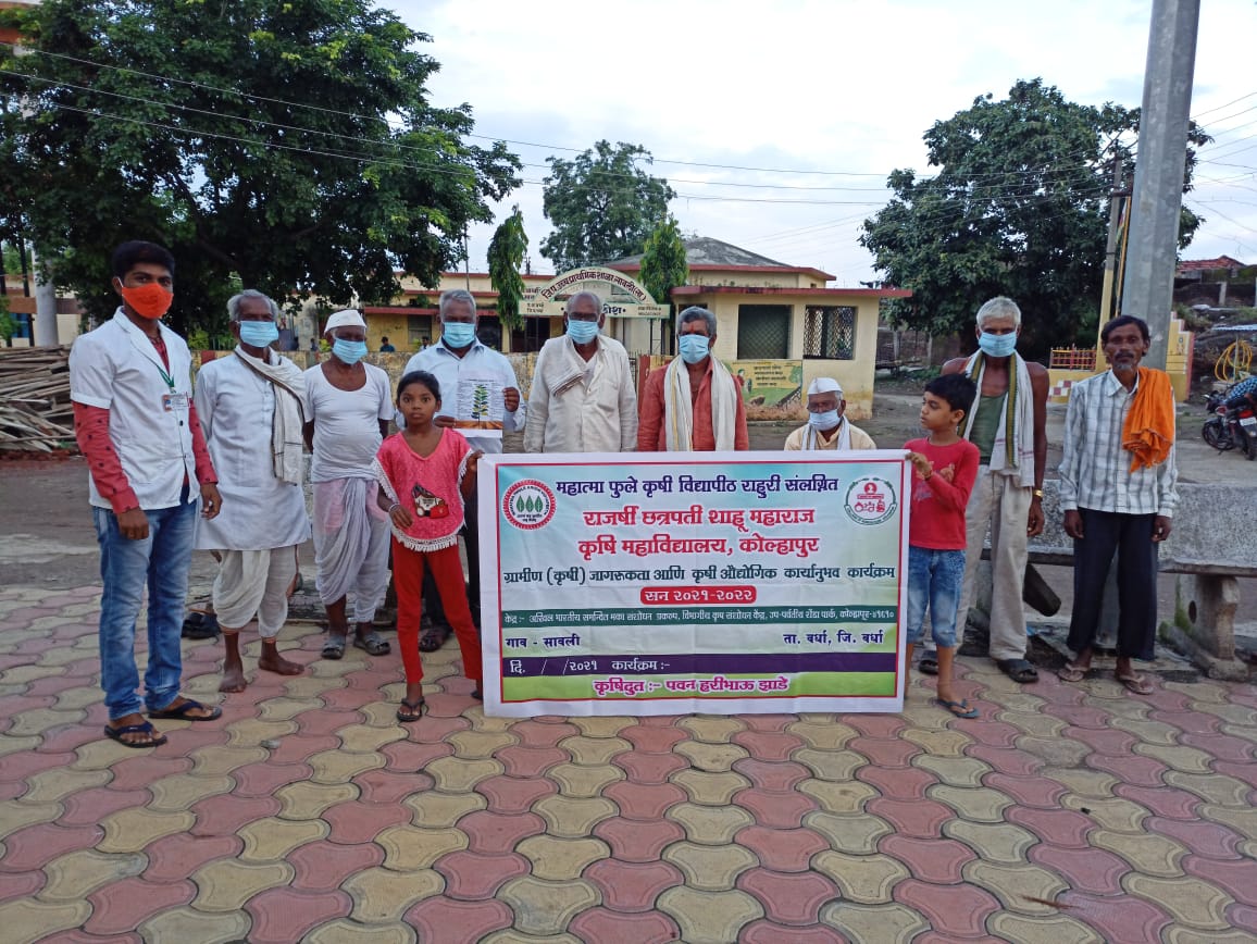 वर्धा /सावली :-महात्मा फुले कृषी विद्यापीठ राहुरी अंतर्गत राजर्षी छत्रपती शाहू महाराज कृषी महाविद्यालय कोल्हापूर येथील चतुर्थ वर्षातील विद्यार्थी व कृषिदुत *पवन हरिभाऊ झाडे* याने ग्रामीण कृषी जागरूकता व औद्योगिक कार्यानुभव कार्यक्रम 2021-22 अंतर्गत गाव -सावली येथील शेतकऱ्यांना शेतीविषयक आधुनिक व शास्त्रशुद्ध पद्धतीने शेती कशी करावी याबद्दल प्रत्यक्ष शेतात जाऊन शेतकऱ्यांना विविध प्रात्याक्षिक देऊन मार्गदर्शन केले .त्यामधे आधुनिक सिंचन सामग्री , एकात्मिक तण व्यवस्थापन ,एकात्मिक कीड व रोग व्यवस्थापन,