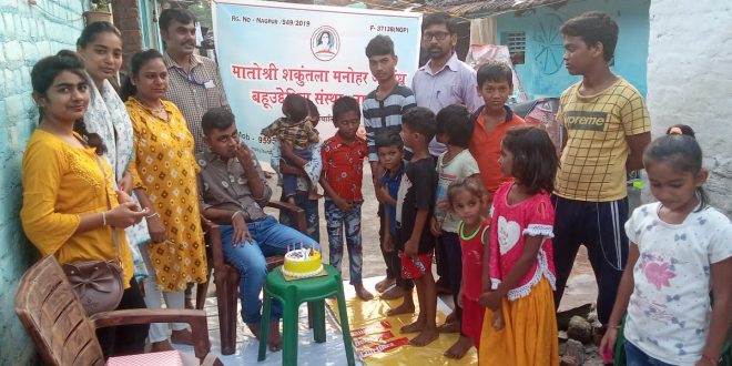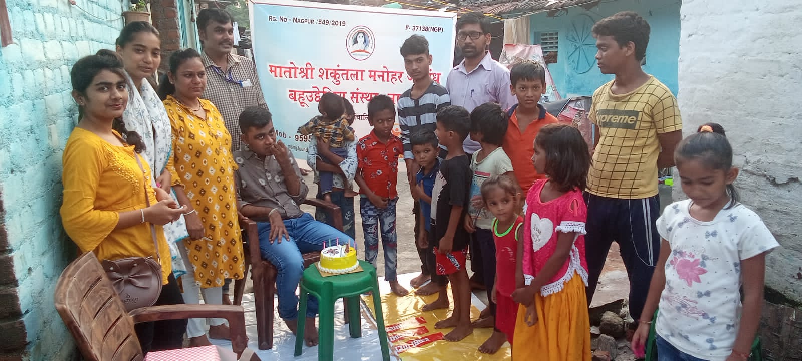 नागपूर :- अपंग, अनाथ , विधवा अशा गरीब गरजु वंचितांसाठी मातोश्री शकुंतला मनोहर जनबंधु बहूउद्देशीय संस्था कार्य करत असतात, त्यामुळे आज दिनांक 7/10/2021च्या रोजी विनित ( चिकू ) लांडगे या दिव्यांग मुलाचा वाढदिवसानिमित्त नागपूर मधील झोपडपट्टी भागात तेथील राहत असलेल्या दिव्यांग व सर्व साधारण मुलांबरोबर वाढदिवस साजरा करण्यात आला व त्यांना भोजन दान करण्यात आला.
