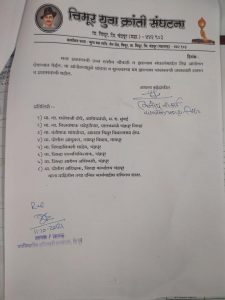 चिमूर : – सौ. ज्योती संतोष बोळणे रा. तळोधी बाळापूर येथील ही महिला रहिवाशी असून या महिलेचे आईचे गाव नेरी असल्याने चिमूर येथे उपजिल्हा रुग्णालयात होत असलेल्या कुटुंबनियोजन शस्त्रक्रिया करतांना यावेळी वैद्यकीय अधिक्षक डॉ. गोपाल भगत व स्त्री रोगतज्ञ डॉ. वैशाली सरांगे यांच्या निष्काळजीपणामुळे महिलेचा मृत्यु झाल्यामुळे दोषी डॉक्टरांवर मनुष्यवधाचा गुन्हा दाखल करण्यासाठी युवा क्रांति संघटनेच्या वतीने निवेदन देण्यात आले.