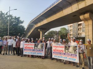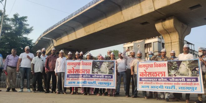नागपूर :-काल रात्री 2014 मध्ये देशाचे प्रतप्रधान श्री नरेन्द्र मोदी यांनी भूमिपूजन केलेला उडानपुल पूर्ण तयार होण्या आधीच कोसळला. यामध्ये मोठ्या प्रमाणात अनियमितता व भ्रष्ट्राचार झाल्याचे प्रथम दर्शनी दिसून येते. आज दिनांक 20/10/2021 रोजी आम आदमी पार्टी नागपूर कडून पारडी कळमना रस्त्यावरील उड्डाणपूल निष्काळजीपणामुळे कोसळल्याच्या विरोधात आंदोलन झाले. हे आंदोलन राज्य समिती सदस्य व विदर्भ संयोजक देवेंद्र वानखडे आणि राज्य कोषाध्यक्ष जगजीत सिंग यांच्या नेतृत्वात झाले.
