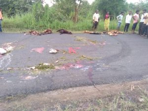 वाहनाच्या धडकेत अकरा शेळ्यांचा मृत्यू लाखाचे नुकसान