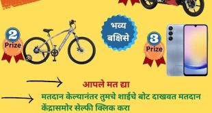 Read More »मतदारांनो ! तुम्ही सुध्दा जिंकू शकता बाईक, रेसींग सायकल आणि ॲन्ड्राईड मोबाईल