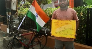 जिल्हा प्रतिनिधी-सुनिल हिंगणकर वरोरा:-देशाचे प्रधानमंत्री नरेंद्र मोदी यांच्या हर घर तिरंगा उपक्रम मध्ये तिरंगा घरोघरी लावावा असा नारा लावत वरोरा शहरातील दिपक प्रमोदराव दौलतकर यांनी सायकल द्वारे अवघ्या 3 तासात वरोरा ते जठपुरा गेट चंद्रपूर 50 किलोमीटर अंतर पार केले, हा वरोरा शहरात नवीनच विक्रम आहे अशे शहरातील जनचेते मत …