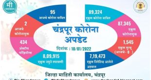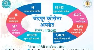 अभ्यागतांनी 8329651110 या क्रमांकावर संपर्क करण्याचे आवाहन जिल्हा प्रतिनिधी-सुनिल हिंगणकर चंद्रपूर दि. 11 जानेवारी : जिल्ह्यात गत आठवड्यापासून कोरोना बाधितांच्या संख्येत झपाट्याने वाढ होत आहे. कोरोनाचा प्रादुर्भाव रोखण्यासाठी नियमितपणे मास्क लावणे, आवश्यकता नसल्यास घराच्या बाहेर न पडणे, एकाच ठिकाणी गर्दी न करणे, एकमेकांपासून सुरक्षित अंतर राखणे आदी नियमांचे पालन करणे …